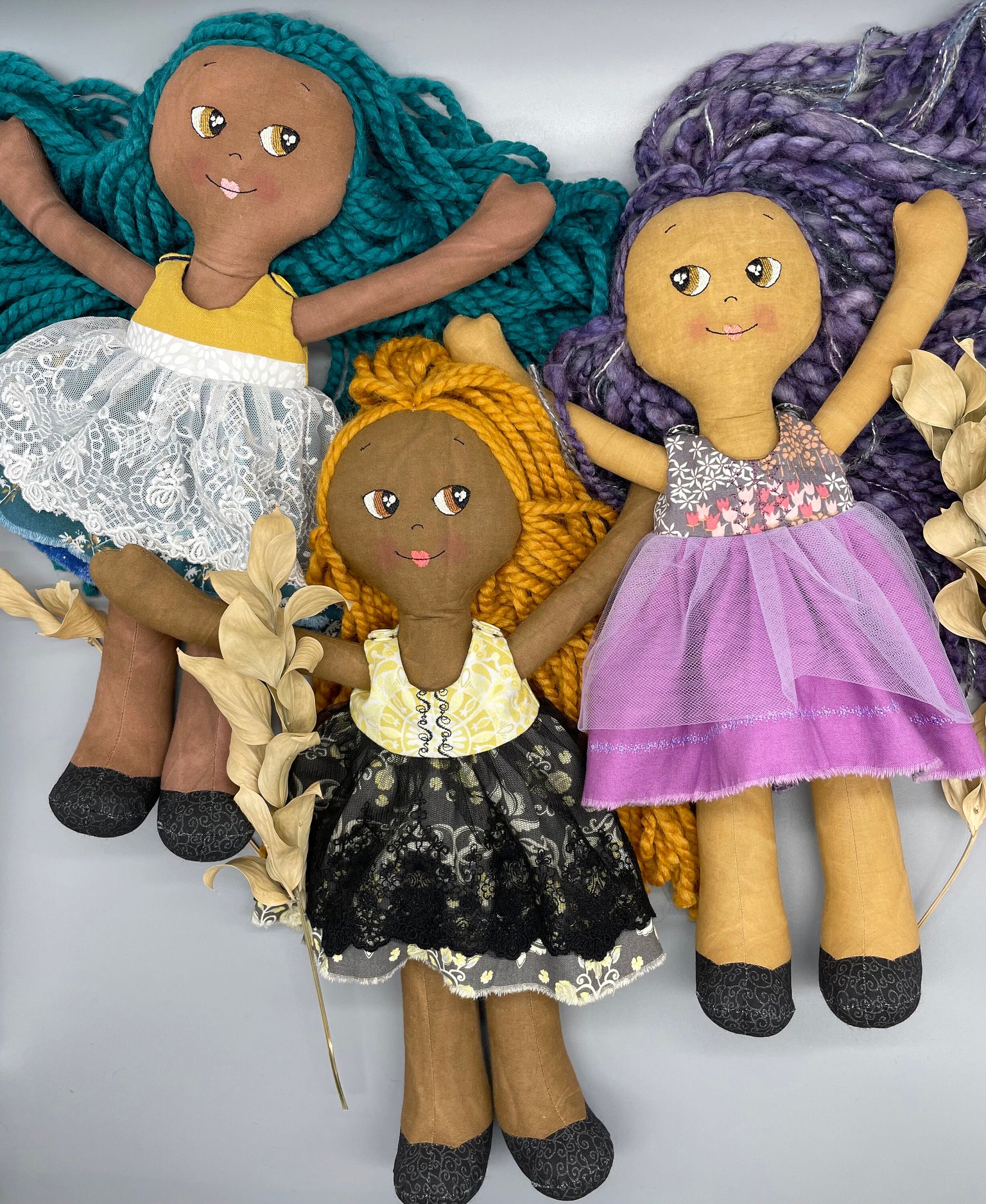 Each doll is made from an aged cotton muslin, and so, please notice the skin coloring is not uniform, resulting in occasional wrinkle or fold lines which are slight. This gives each doll a unique appearance, as you will notice in the photographs. Please note that the colors may appear slightly different in person, due to different monitor or screen settings. All fabric has been prewashed. Each seam is double stitched.